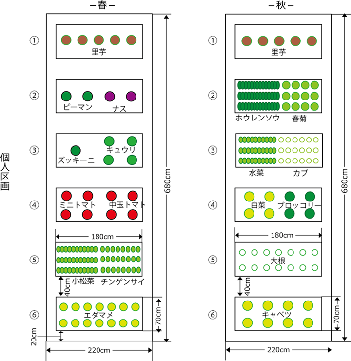 基本となる個人区画に加えて、共同区画を設けることで、個人区画での栽培が難しい野菜の栽培や、交流イベントでの活用、コミュニティ形成につながる(図表9)。