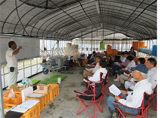 栽培講習会での講師等インストラクターを務める担当者は、営農部園芸課の職員で、日頃から営農指導や育苗等を担当しており、ファーマーズマーケットの出荷者を対象とした多様な品目の栽培講習会も担当している。したがって、多品目の野菜の栽培に精通しており、講習会等で人に教えることにも非常に慣れている。取材した当日の栽培講習会でも、専門的知識に基づいて、しかも素人にもわかりやすい解説と指導をしていた。